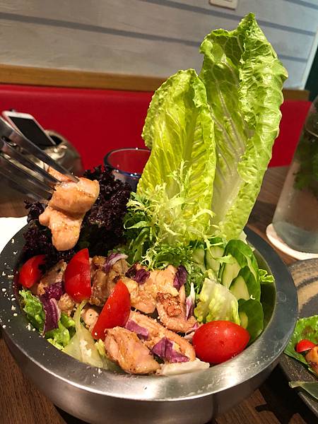 隠身巨城対面巷弄中,情侶檔共同努力中,食材重天然的的質樸系小店。(更新:2018年11月他們結婚了,恭喜) 㐃凱撒沙拉,陪伴微調味雞肉的"只有"新鮮生菜。NT220。 㐃沒有多餘妝扮的脆薯條,NT120。照片只有半份,因為今天吃過些東西才來的。 㐃冰菓茶,大片水果不寒酸。