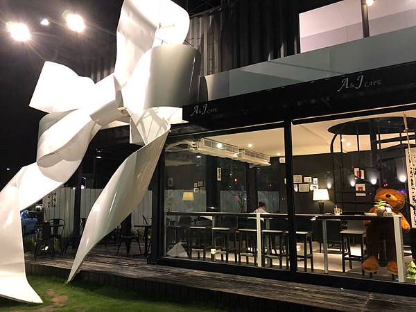 68快速下去拐個彎就到。外頭大大的蝴蝶結的特色貨櫃咖啡屋。 㐃特色搶眼的AJ。